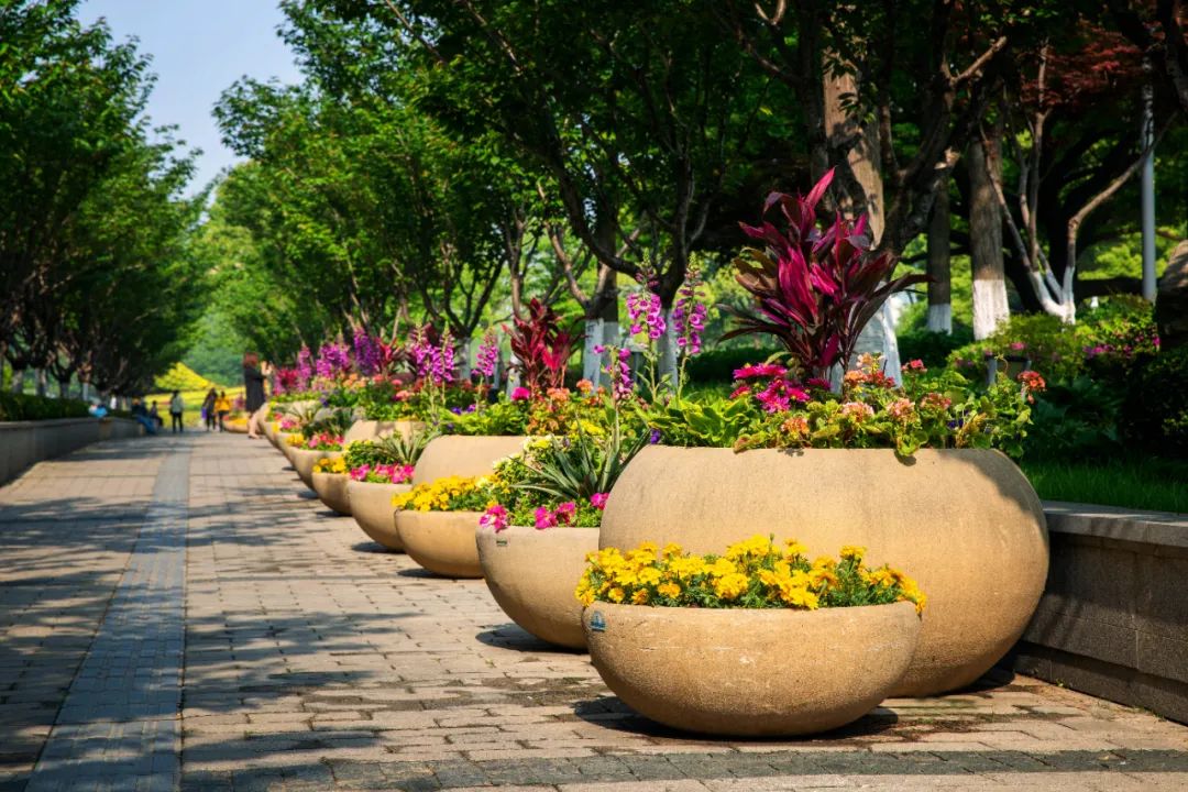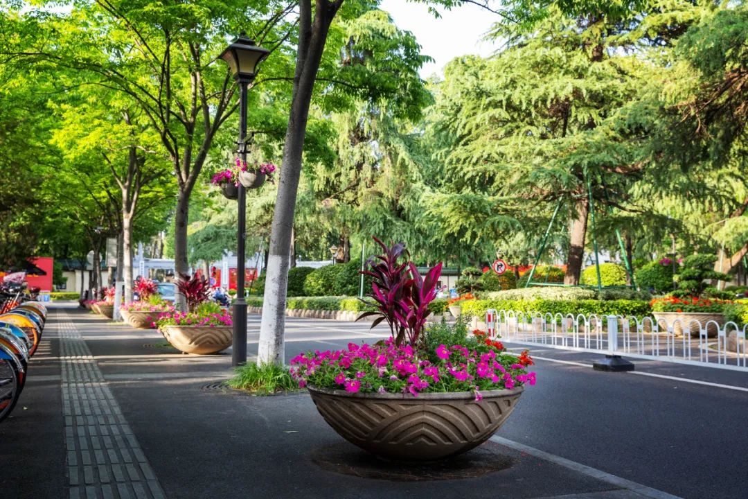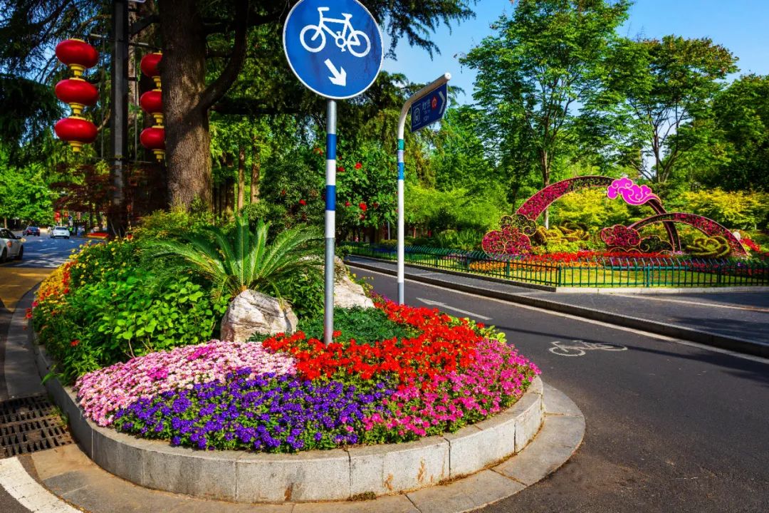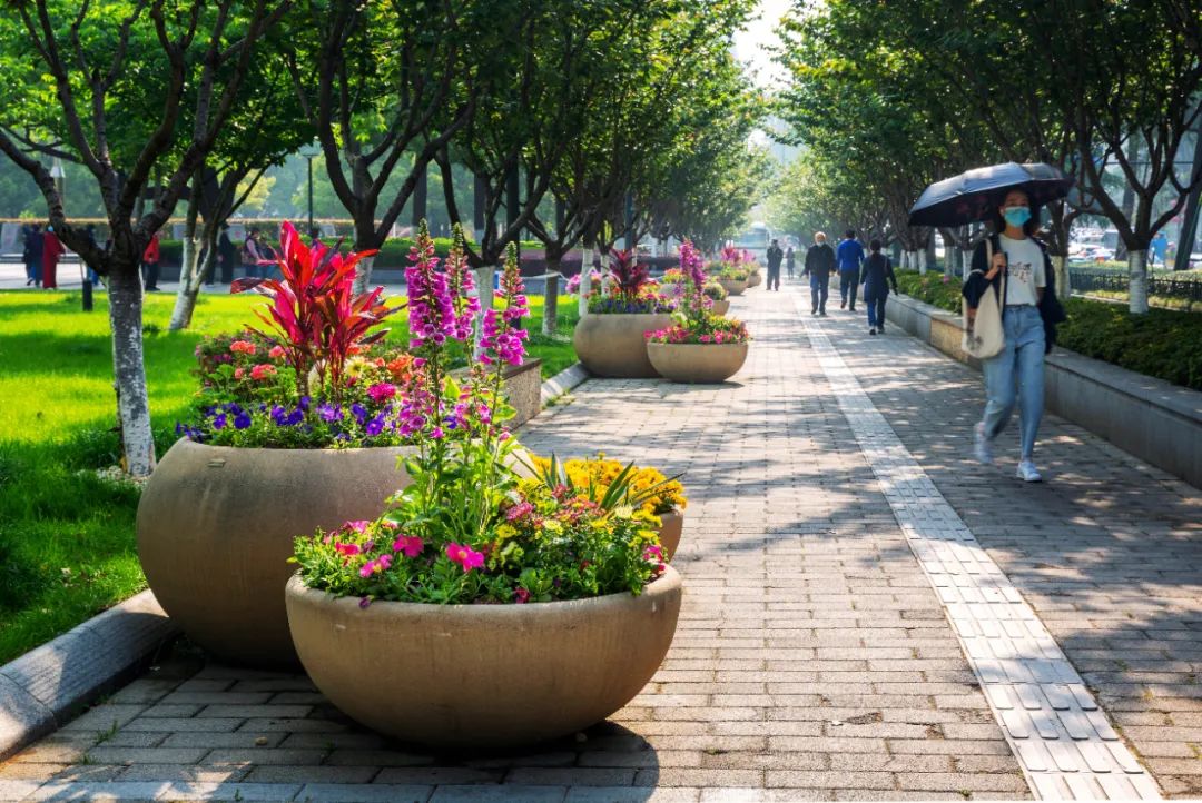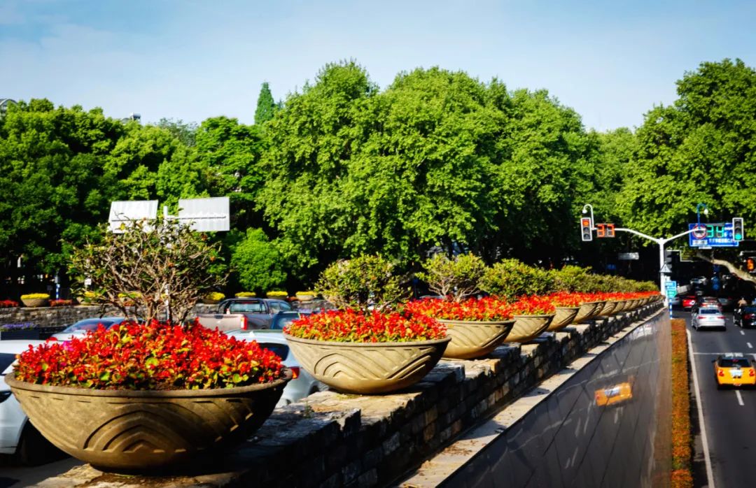 鼓樓市民廣場花境、組合花碗、花傘等繼續(xù)以色彩豐富、花卉進行布置,裝扮生機盎然、環(huán)境宜人的城市客廳。