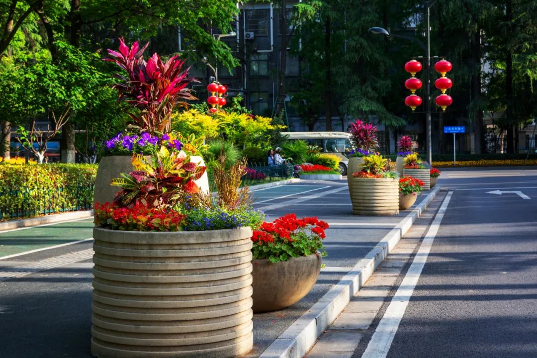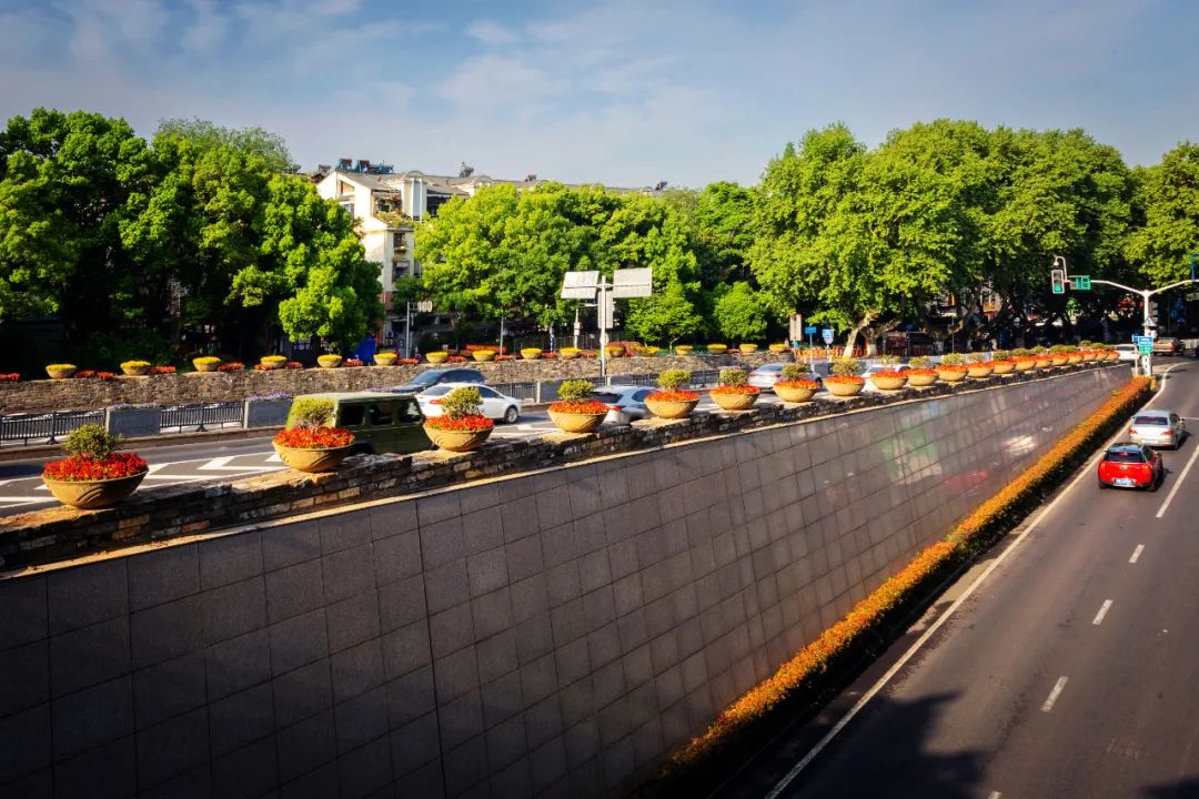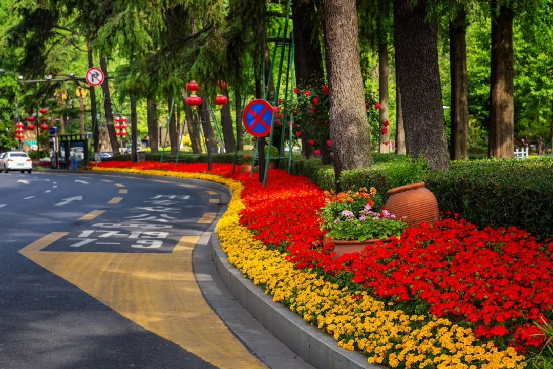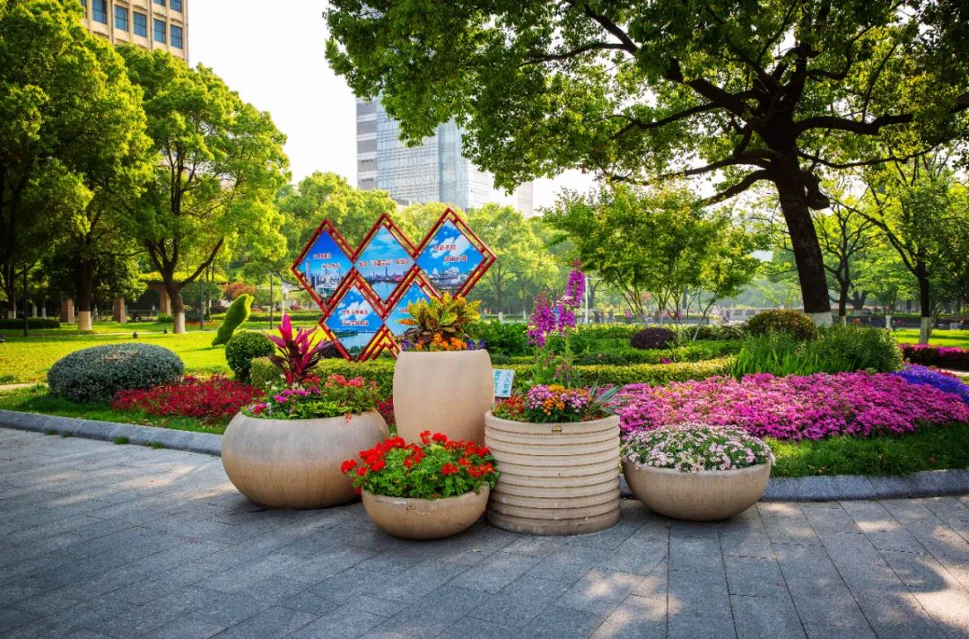 鼓樓市民廣場花境、組合花碗、花傘等繼續(xù)以色彩豐富、花卉進行布置,裝扮生機盎然、環(huán)境宜人的城市客廳。