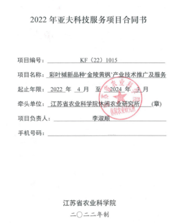 近日,金杉生態(tài)環(huán)境科技(南京)有限公司與江蘇省農科院休閑農業(yè)研究所聯(lián)合推動的<‘金陵黃楓’產(chǎn)業(yè)技術推廣及服務>成功申報2022年亞夫科技服務項目。